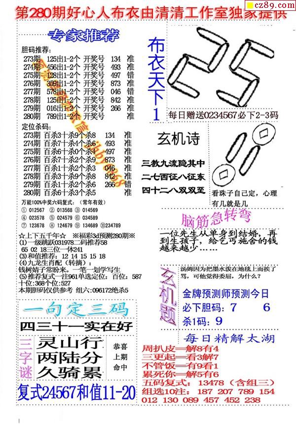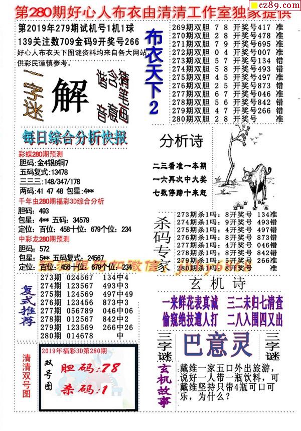 26福彩3d050期真版荆楚玄机彩报