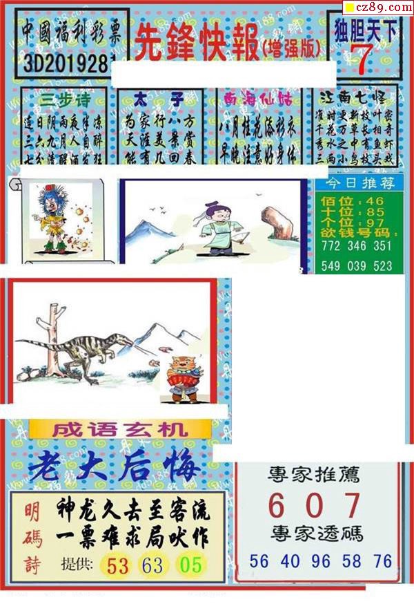 牛彩版3D字谜彩报图25年345期打印版