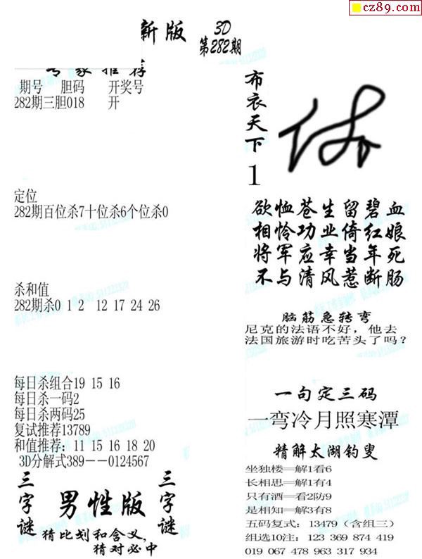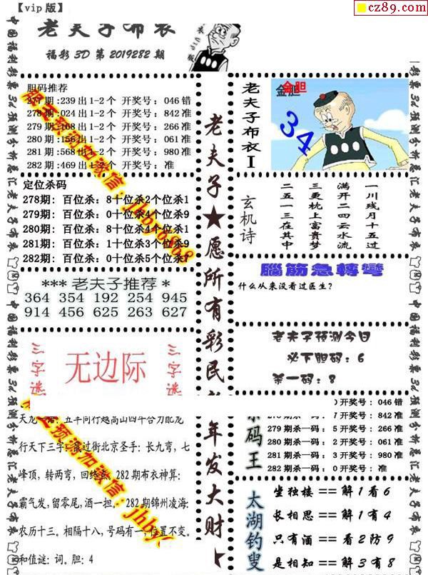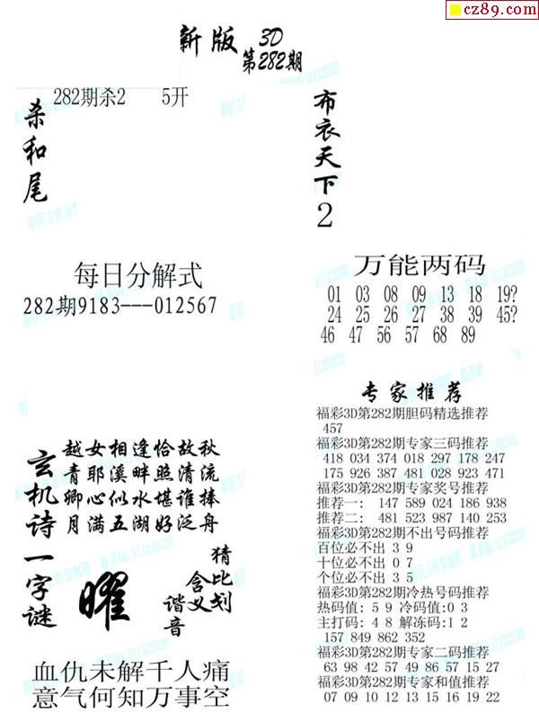 2019282期3d图谜汇总(五)