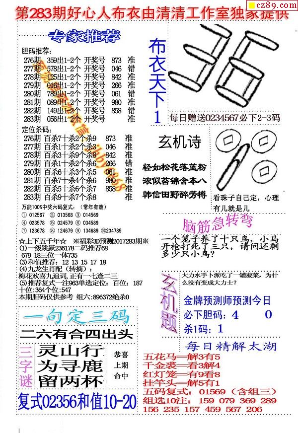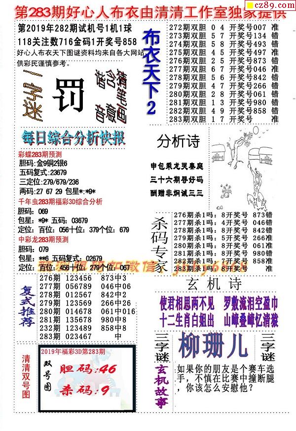 2019283期3D图谜汇总(八)