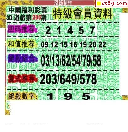 2019285期3D图谜汇总(一)