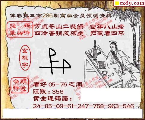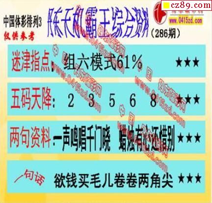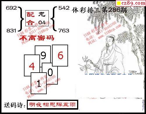 2019年286期牛彩网体彩P3画迷图谜汇总分享
