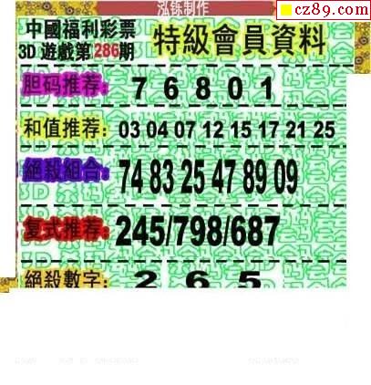 2019286期3D图谜汇总(一)