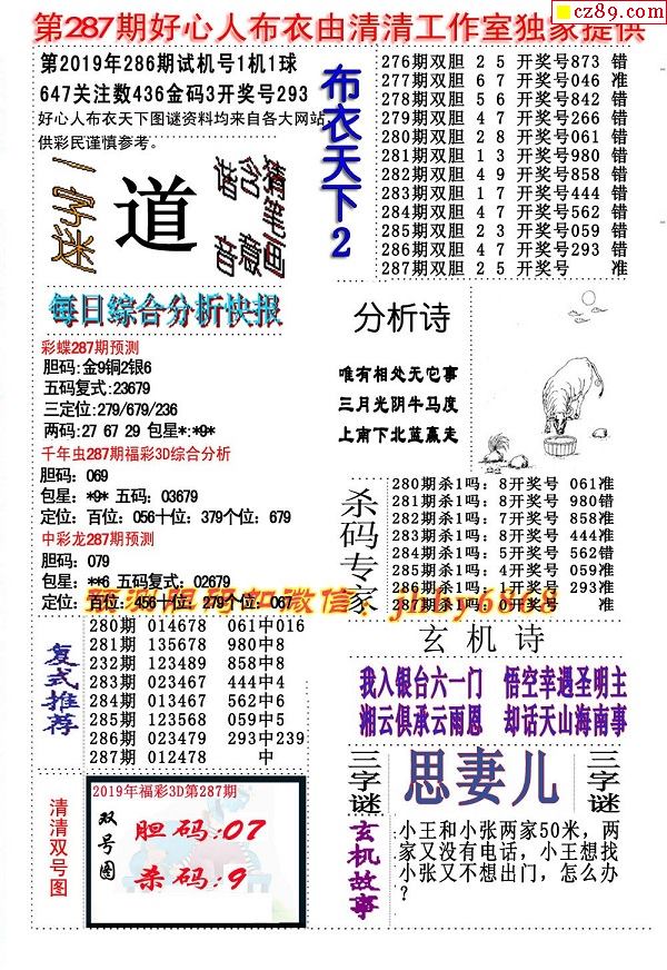 牛彩版3D字谜彩报图25年339期打印版