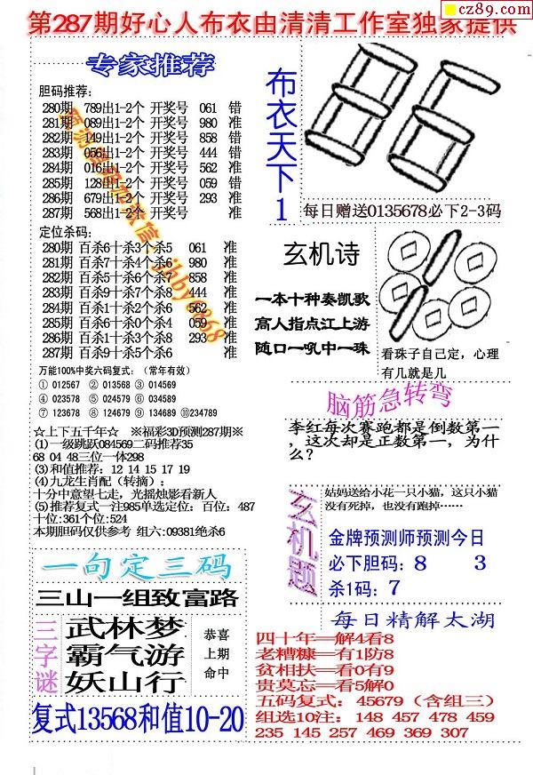 2019287期3D图谜汇总(八)