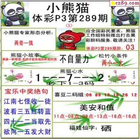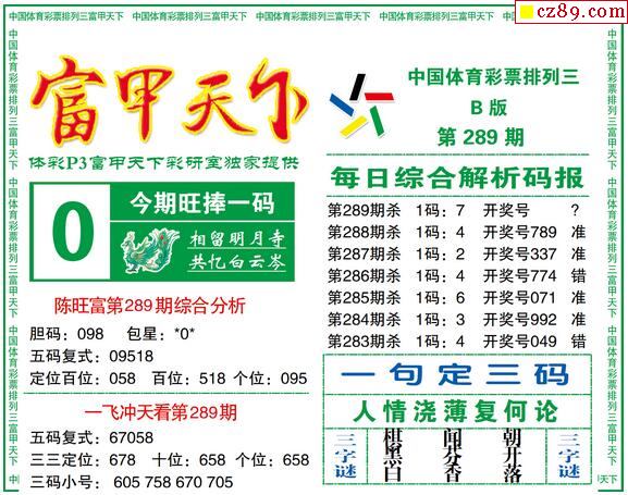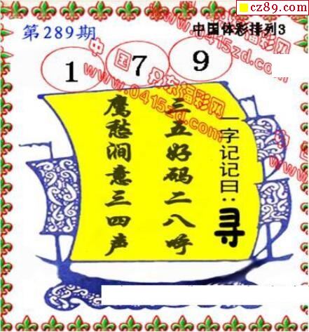 2019年289期牛彩网体彩P3画迷图谜汇总分享