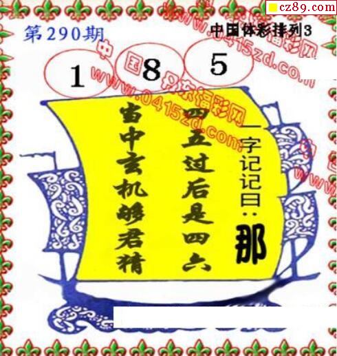 2019年290期牛彩网体彩P3画迷图谜汇总分享