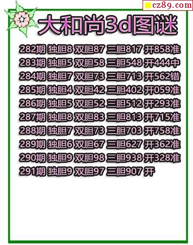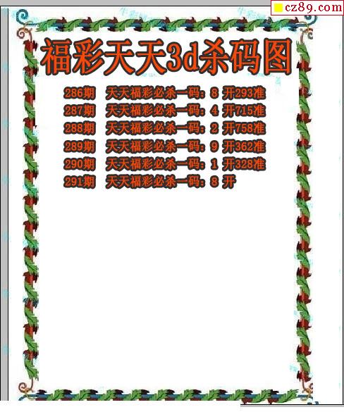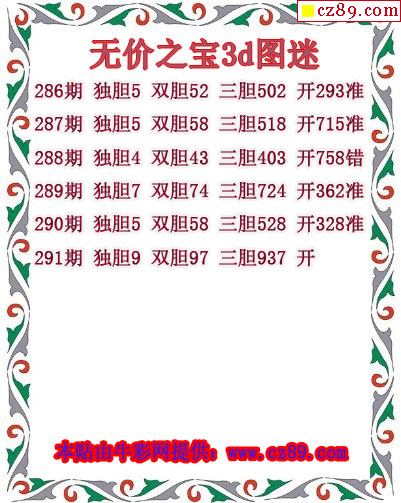 2019291期3D图谜汇总(九)