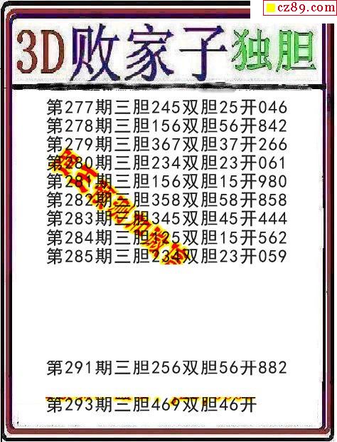 败家子杀码2026041期3d图谜(原创)