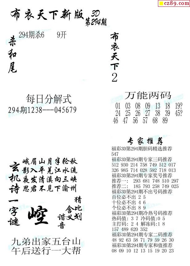 2019294期3d图谜汇总(五)