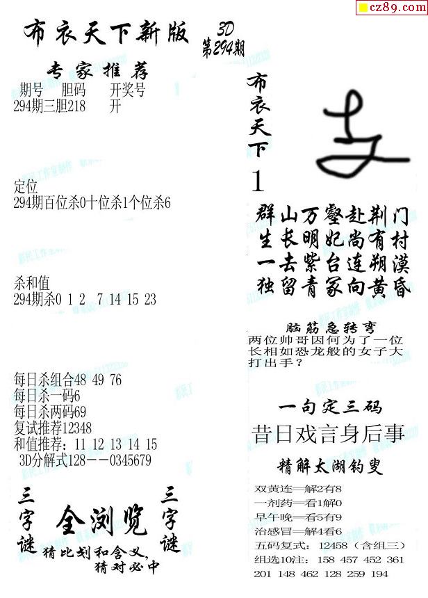 牛彩版3D字谜彩报图25年336期打印版