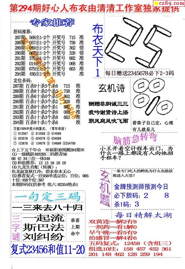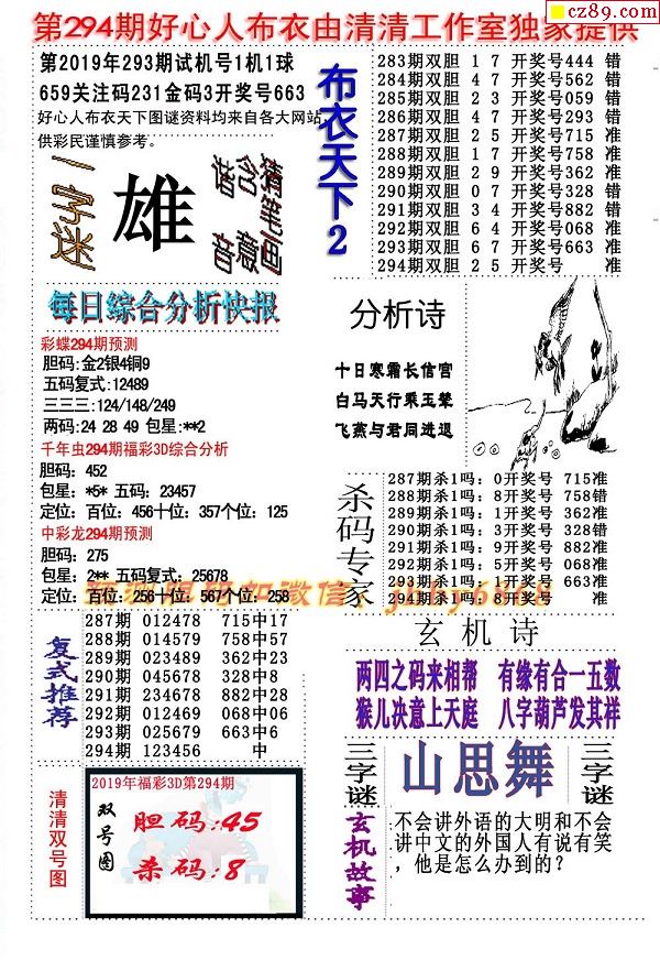 2019294期3D图谜汇总(八)