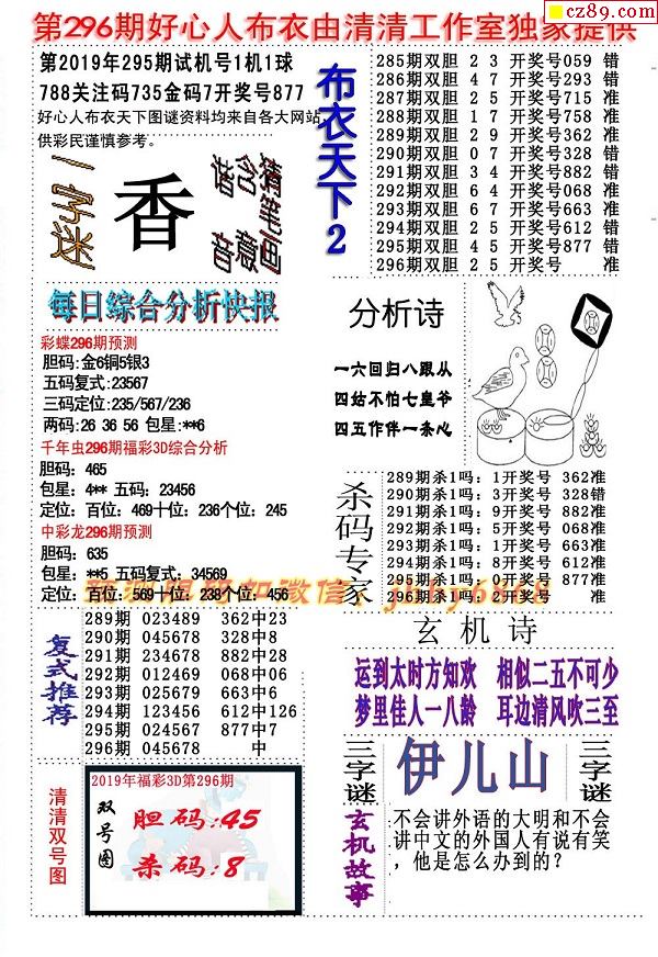 2019296期3D图谜汇总(八)