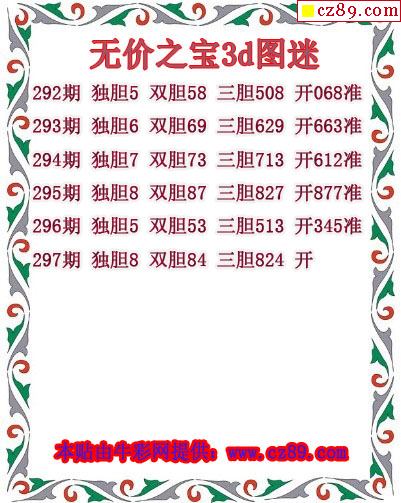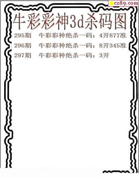 牛彩版3D预测彩报图25年334期打印版