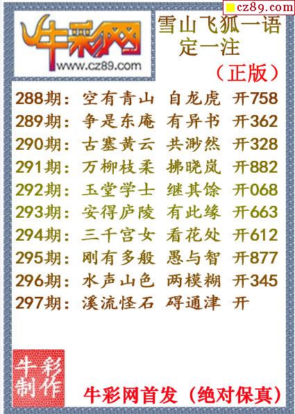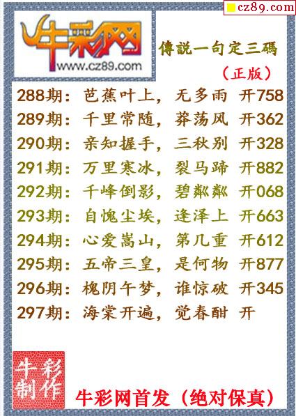 牛彩版3D字谜彩报图25年334期打印版