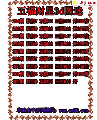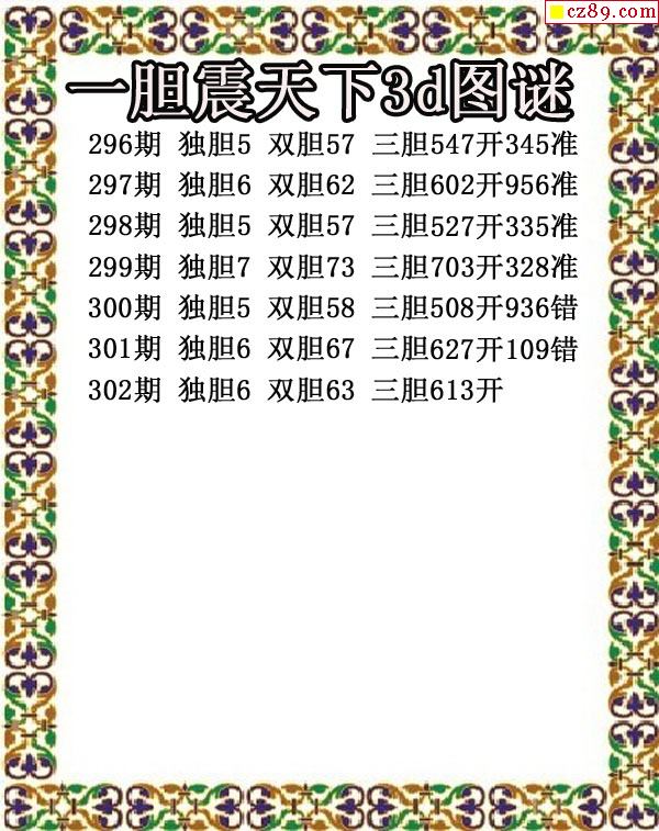 2019302期3D图谜汇总(九)