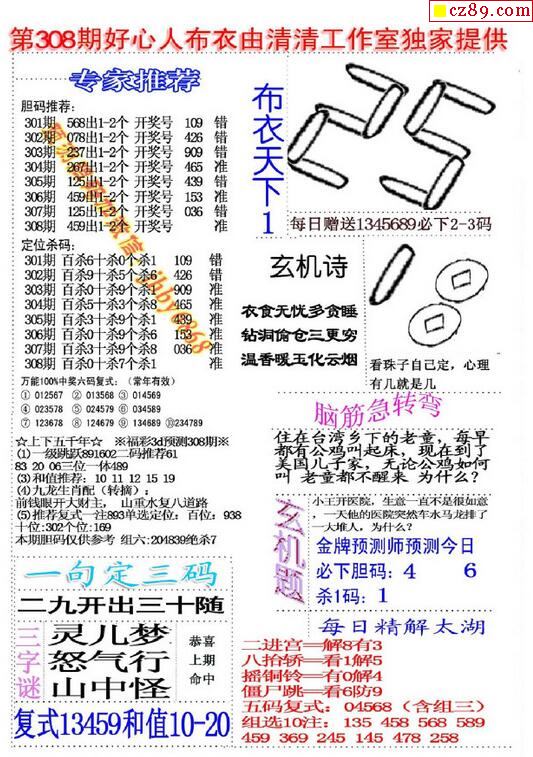 2019308期3D图谜汇总(八)