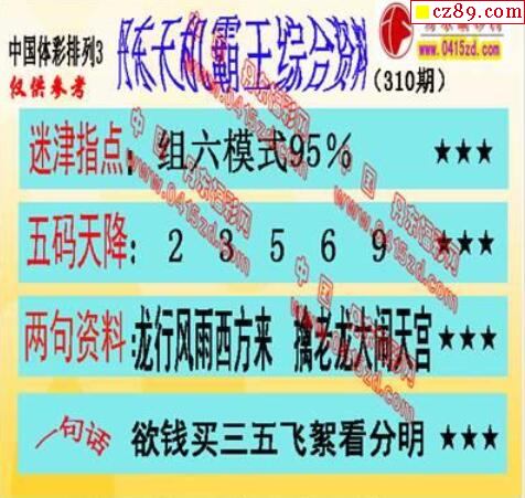 2019年310期牛彩网体彩P3画迷图谜汇总分享