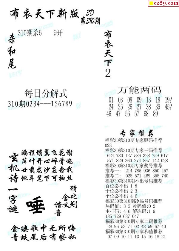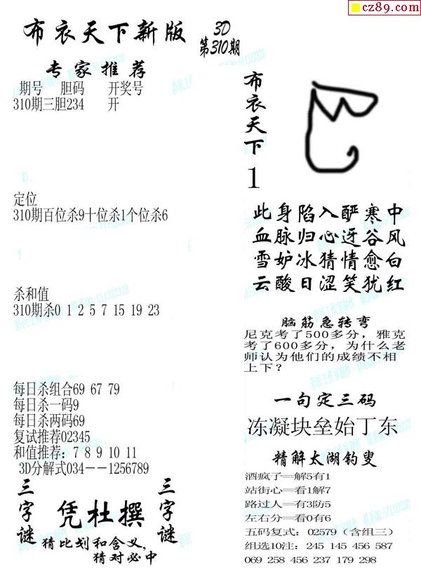 2019310期3d图谜汇总(五)