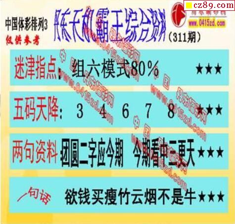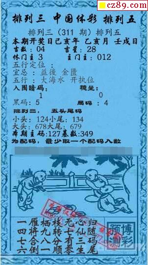 2019年311期牛彩网体彩P3画迷图谜汇总分享