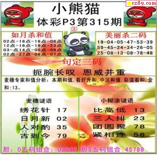 小熊猫2025335期体彩P3图谜