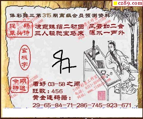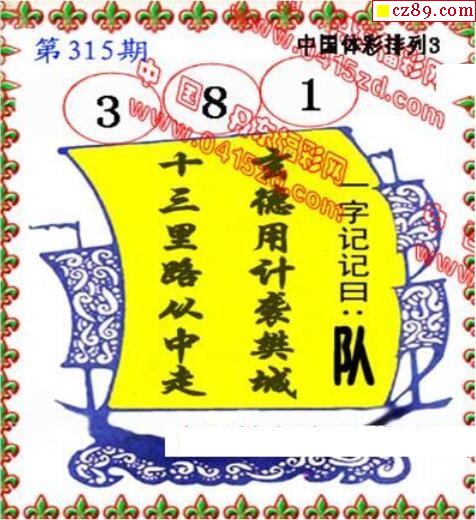 2019年315期牛彩网体彩P3画迷图谜汇总分享