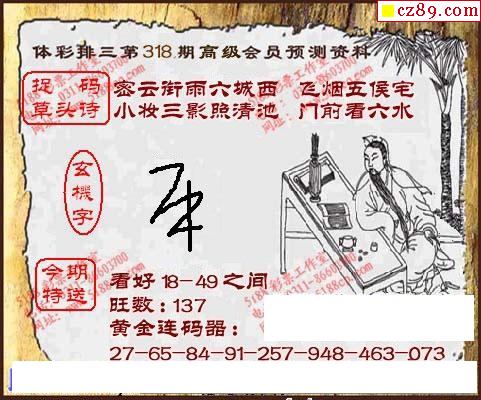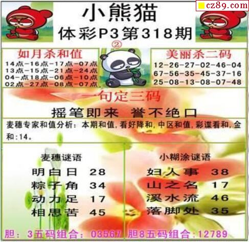 2019年318期牛彩网体彩P3画迷图谜汇总分享