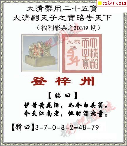 福彩3D2025335期 祁连牧哥百财纳福胆码图谜推荐