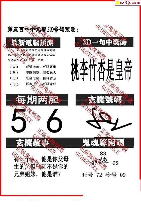 2019319期3D图谜汇总(二)