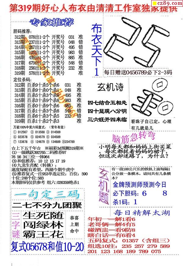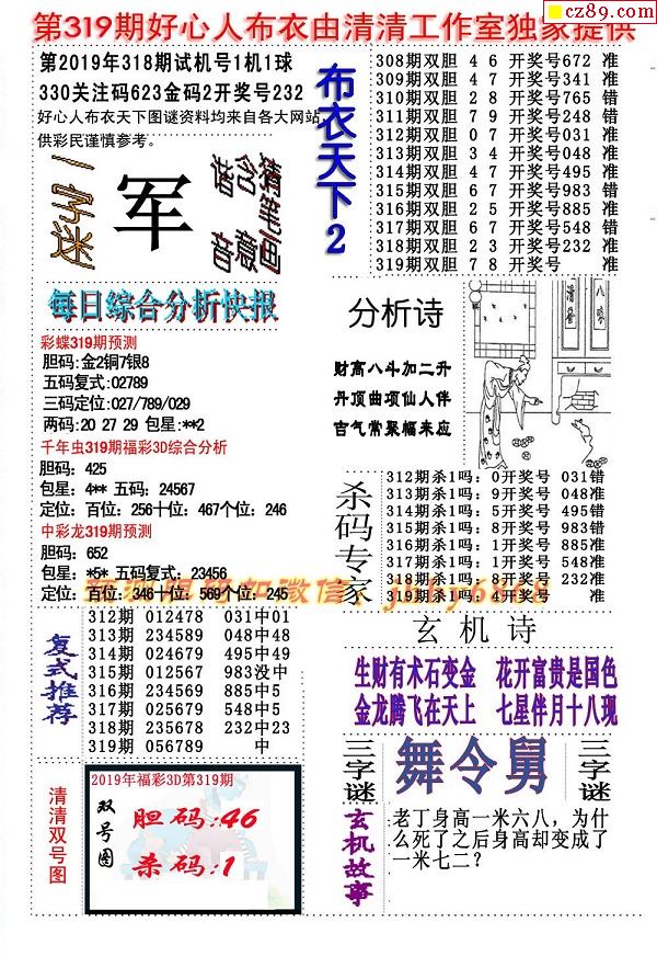 2019319期3D图谜汇总(八)