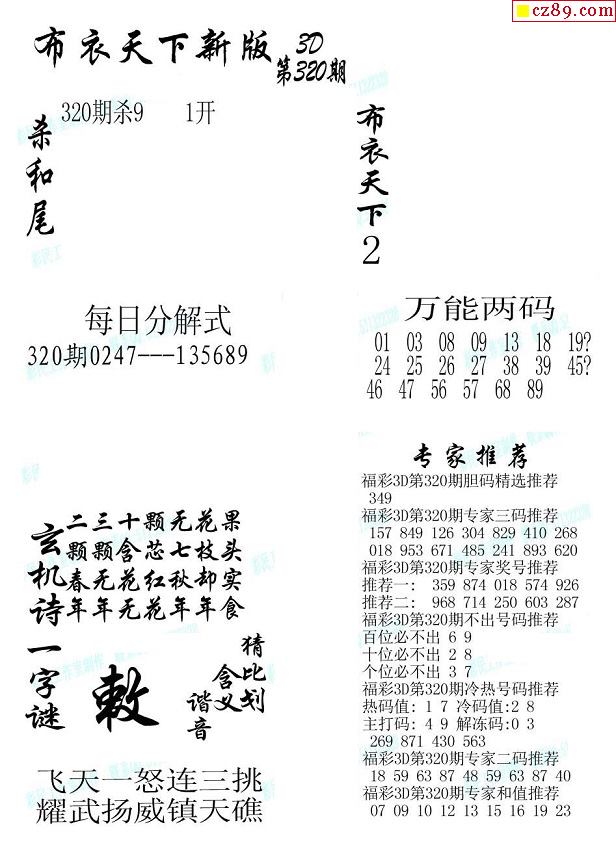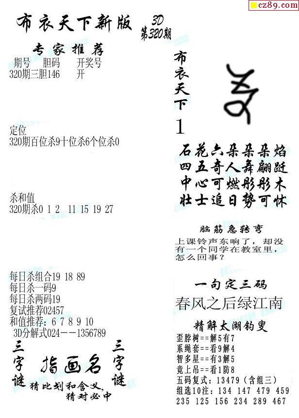 牛彩版3D字谜彩报图25年340期打印版