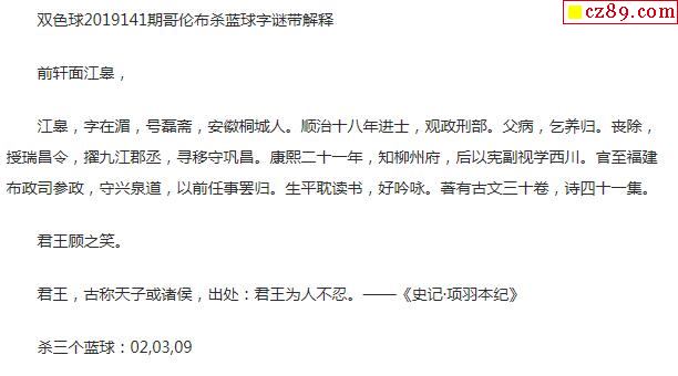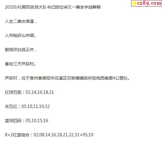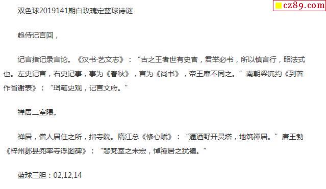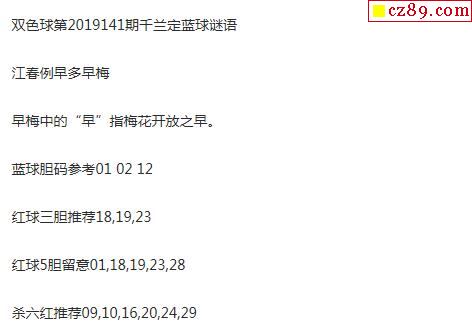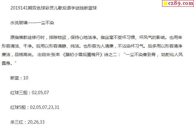 2019年141期牛彩网双色球字迷图谜汇总