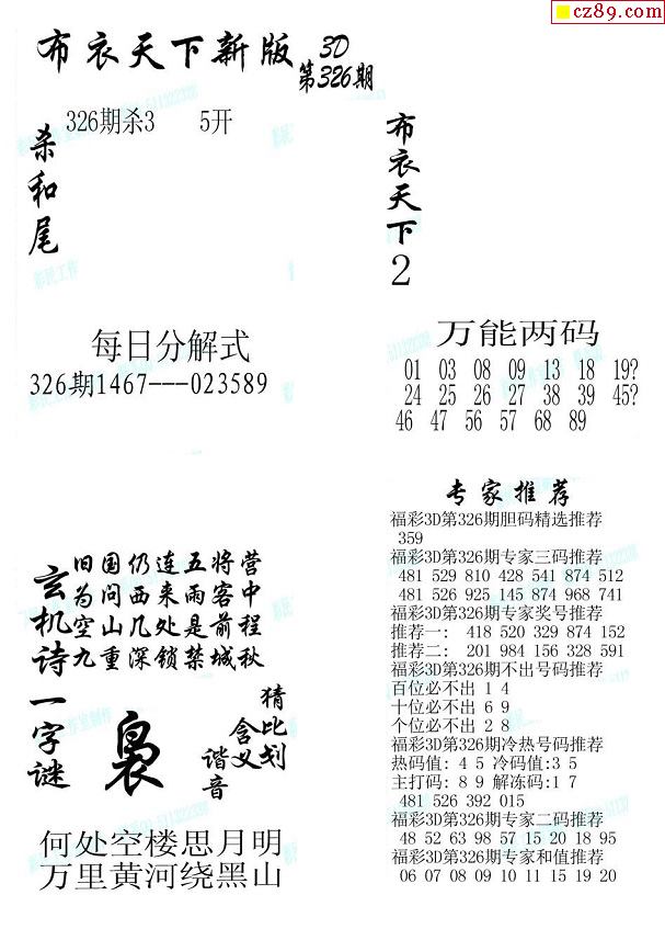 福彩3D2026033期 祁连牧哥百财纳福胆码图谜推荐