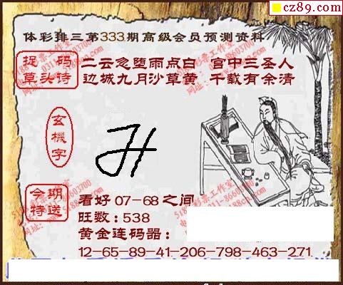2019年333期牛彩网体彩P3画迷图谜汇总分享