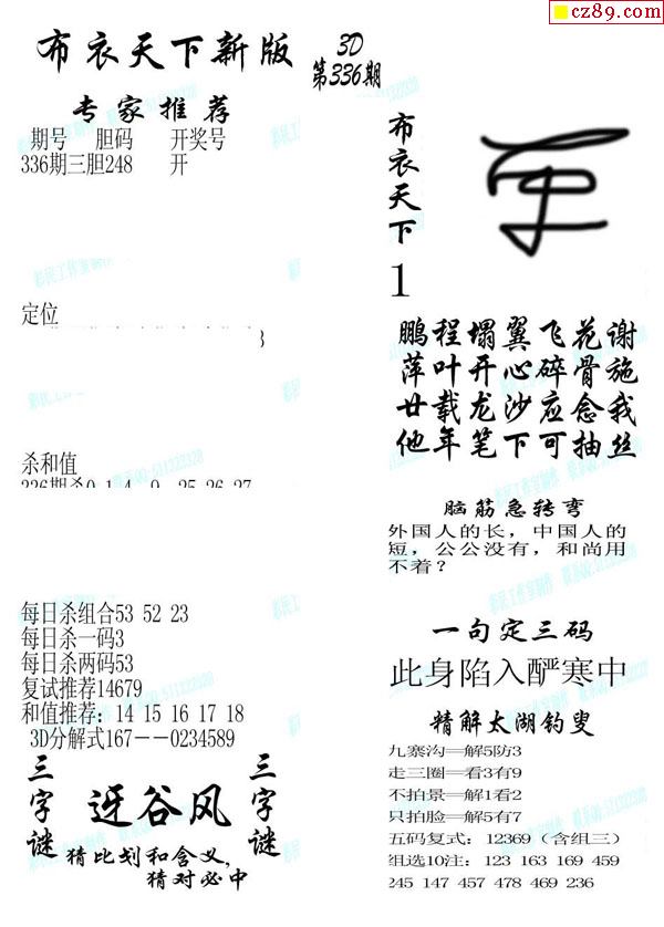 2019336期3d图谜汇总(五)