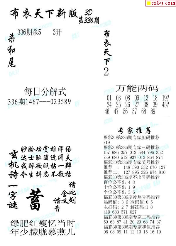 2025330期3D图谜汇总(一)