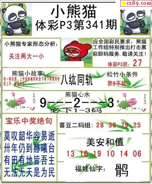 2019年341期牛彩网体彩P3画迷图谜汇总分享