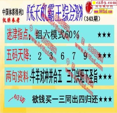2019年343期牛彩网体彩P3画迷图谜汇总分享