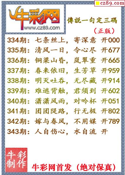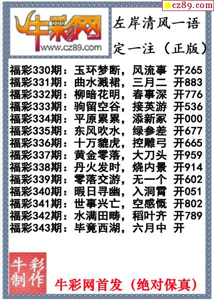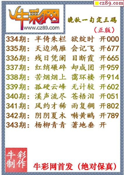 牛彩版3D字谜彩报图26年037期打印版