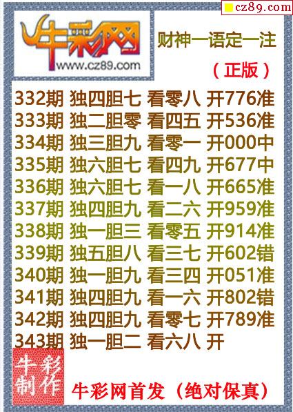 牛彩版3D预测彩报图26年037期打印版