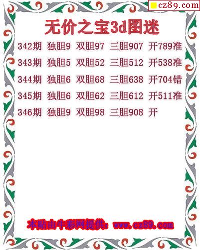 福彩3D2025345期 祁连牧哥百财纳福胆码图谜推荐