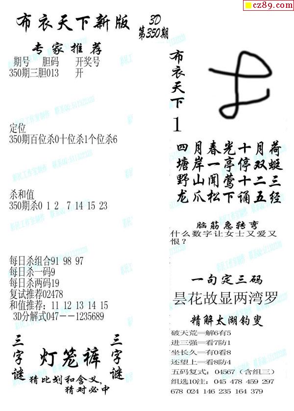 牛彩版3D字谜彩报图25年337期打印版