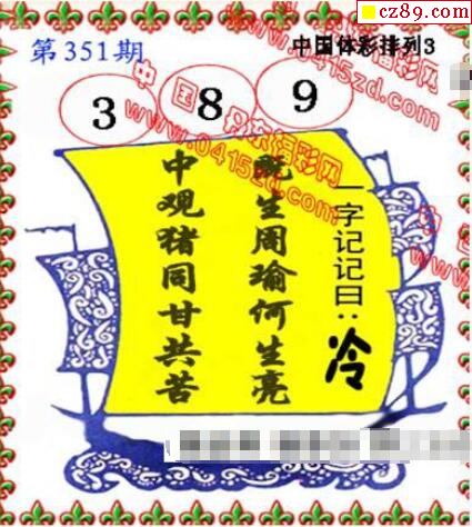 2019年351期牛彩网体彩P3画迷图谜汇总分享
