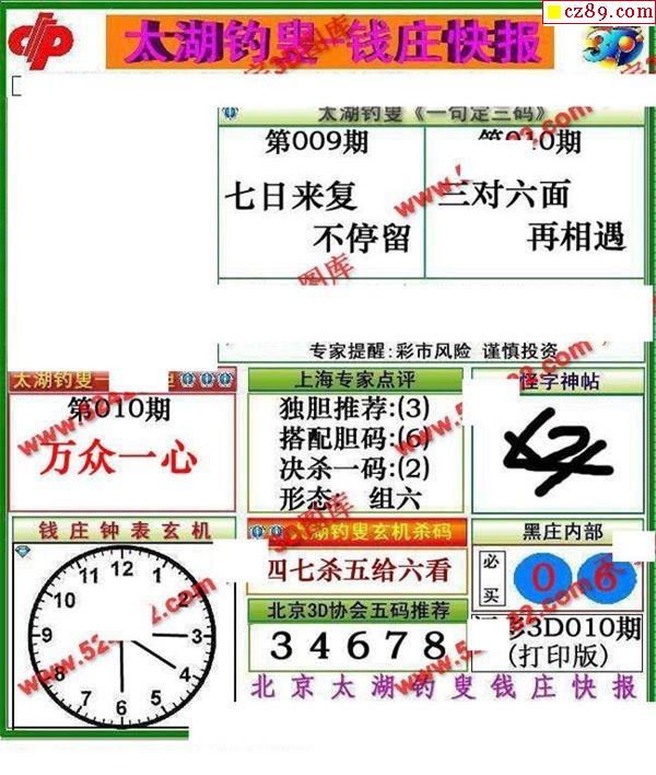 2026039期解太湖3d字图迷汇总报