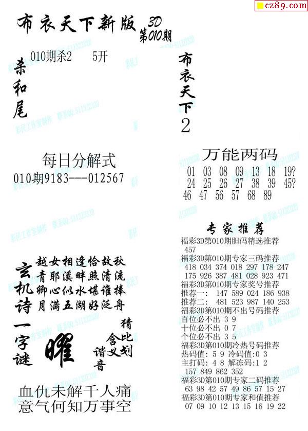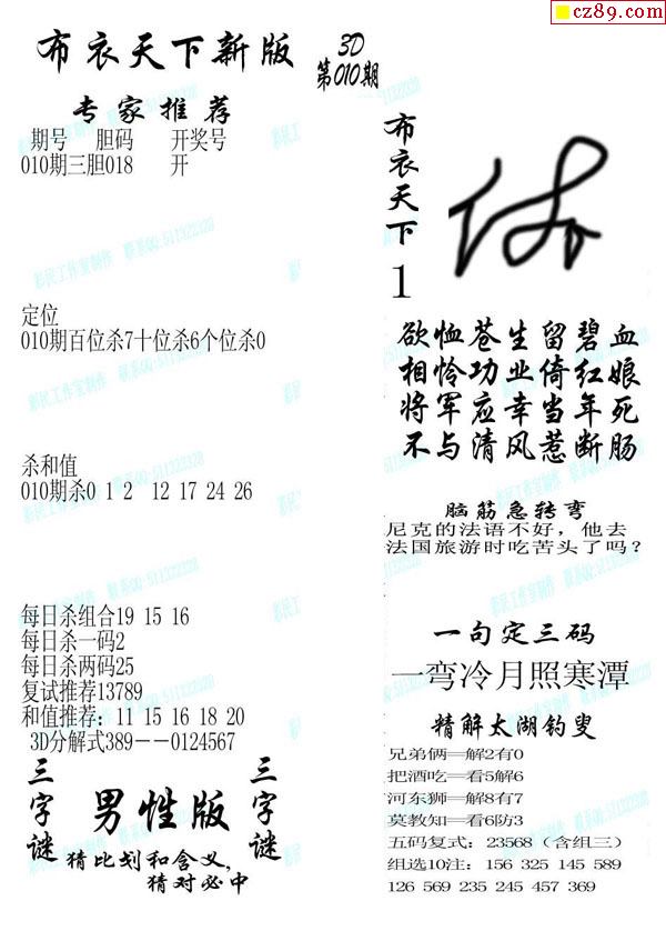 牛彩版3D字谜彩报图26年039期打印版