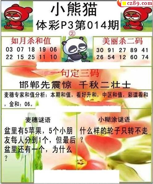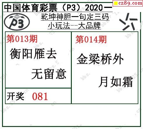 2020年014期牛彩网体彩P3画迷图谜汇总分享