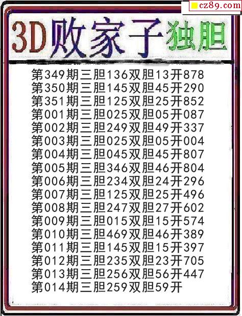 26年016期3d 超越梦想今晚胆码推测图
