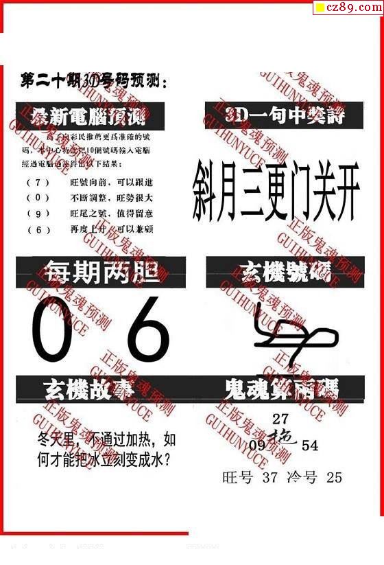 牛彩版3D字谜彩报图25年341期打印版