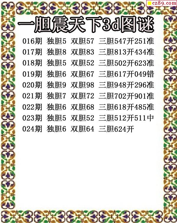 2025339期3D图谜汇总(二)