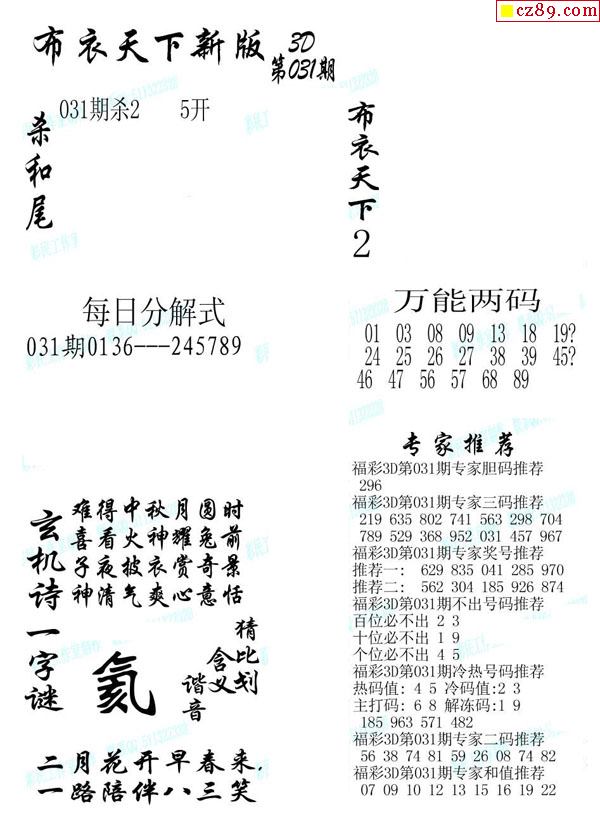 2020031期3d图谜汇总(五)